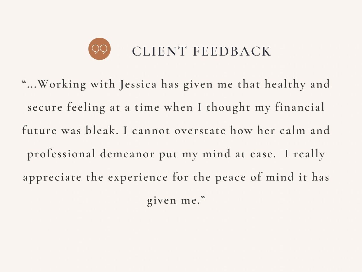 Hi, I'm Jessica I know that divorce can be overwhelming, especially when it comes to untangling shared finances and planning for life after marriage. That's where my services come in. I work closely with clients throughout North Carolina, offering personalized financial analysis, coaching, and mediation services tailored to your specific situation. Whether you're just beginning to consider divorce or are already in the midst of proceedings, I'm here to help you understand your options and make choices that align with your goals and priorities.